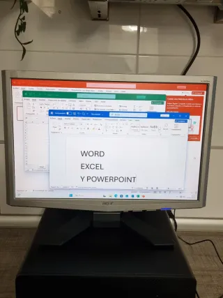 Hola, se vende ordenador de HP completo con estas características: Procesador Intel core i5 6500, Ram DDR4 8GB ampliable a 32GB, Disco duro de 1 tera, Puertos USB 3.0 S/S, puerto USB-C, Grabadora DVD, altavoz incorporado, Pantalla led de 19.5 pulgadas, Ratón y teclado nuevos (abierto para las fotos), Windows 11 Pro recién instalado y Office 2024 con Word Excel y PowerPoint. Cableado incluido, No ocupa nada, se puede poner horizontal o vertical, Arranca en 20 segundos, funciona estupendo, no tiene problemas ni fallos ni hay que hacerle nada, está listo para conectar y usarlo. Se vende por cese de negocio cierre de oficina.