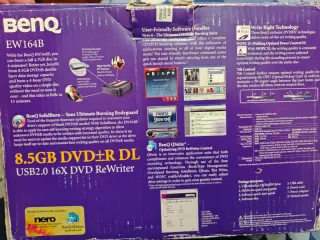 Lector grabador de DVD BenQ EW164B. Imprime el CD con fotos por laser - Soporta 8X DVD±R DL. - Interfaz USB 2.0. - Tecnología SolidBurn.