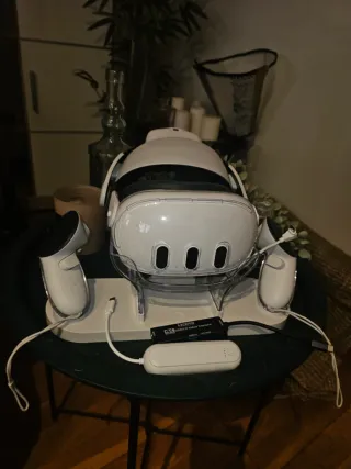 Se venden gafas Meta Quest 3 en perfecto estado, como nuevo, con los siguientes accesorios: -Dispositivo Quest 3 -Estuche de trasnporte -2 Baterias extras que dan hasta 7h de juego -Correa facial ergonomica para mayor comodidad -Protector trasparente de plastico duro -Protector de silicona de las lentes -Mandos y cargador originales -Correa facial original También se incluye: Grabador de vídeo HDMI con conexión USB 3.0. Permite capturar vídeo en 4K. Soporta USB 3.0. Incluye puerto PD de 100 W. Y una base de carga, con carga directa en los mandos, para que nunca te quedes sin batería.