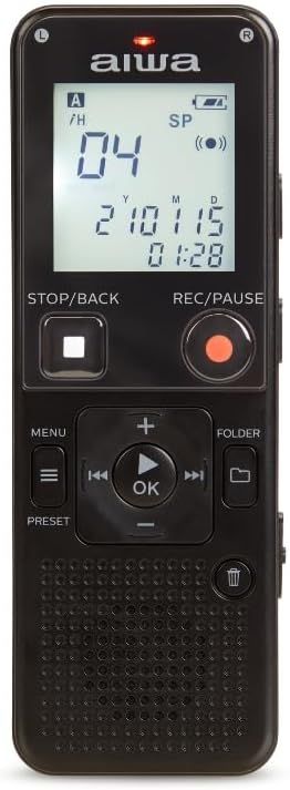 ✅ EN MUY BUEN ESTADO ✅ - 🏷️ Marca: AIWA 🔖 Modelo: DVR-A600 🎨 Color: Negro 📝 Descripción: Grabadora digital AIWA con micrófono estéreo y 16GB de memoria interna, ideal para estudiantes, periodistas y profesionales que necesitan grabar audio de alta calidad y con funciones avanzadas como grabación por voz. LPNWE246195221 - DER.099 🔑 Palabras clave: re-estrena, grabadora de voz, digital, micrófono estéreo, memoria interna, grabación 🔗 Relacionadas: memoria microSDHC, grabación MP3, grabación WAV, USB-C, monitorización, VOR, sintonizador FM, auriculares, alta sensibilidad, estéreo, transferencia rápida, batería larga duración ...
