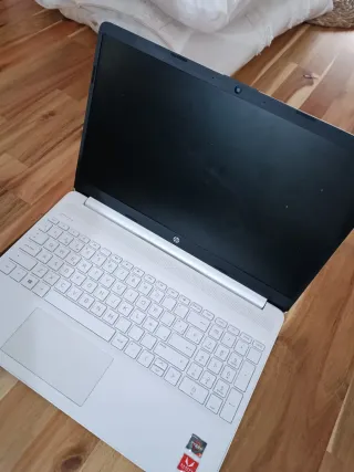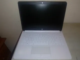 Portátil HP en color blanco. - Diseño elegante y moderno. - Teclado completo. - Amplio touchpad.