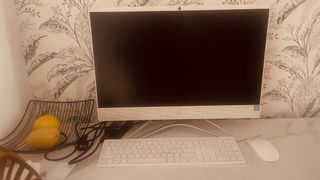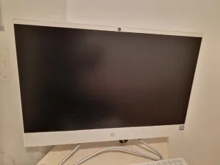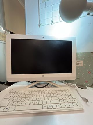 Ordenador de sobremesa HP todo en uno, con un diseño elegante y moderno. - Pantalla de gran tamaño. - Incluye teclado y ratón inalámbricos. - Acabado en color blanco.