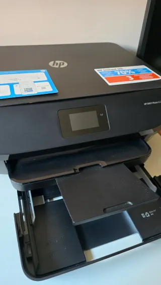 Falta poner cartuchos de tinta. Impresora multifunción HP en color blanco y azul. - Diseño moderno y compacto. - Ideal para el hogar o la oficina pequeña. - Fácil de usar.
