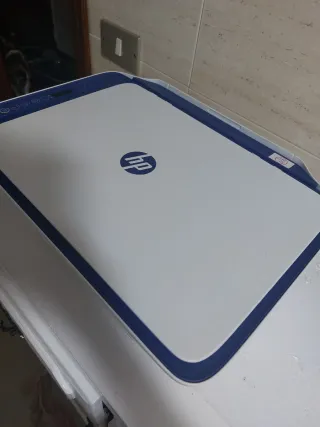 Impresora multifunción HP DeskJet en blanco y azul. Ideal para el hogar o la oficina. - Diseño moderno y compacto. - Bandeja de entrada para papel. - Puerto USB para conexión. Funciona perfectamente y aun tiene tinta. La vendo por cambio a tinta continua.