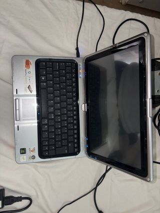 Ordenador portatil marca HP Pavilion TX1000, táctil y con pantalla abatible a modo de tableta. El ordenador FUNCIONA PERO LA PANTALLA NO SE ENCIENDE, por lo que he leído probablemente se trate de la tarjeta de vídeo, en la que alguno de sus pines de conexión se haya soltado. -Se entrega con cargador - Pantalla de buen tamaño. - Teclado completo. - Diseño elegante