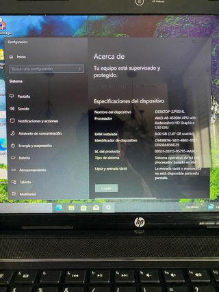Ordenador portátil HP Pavilion g6 en color negro. Cuenta con un procesador AMD A8-4500M y 8 GB de RAM. - Procesador: AMD A8-4500M APU with Radeon(tm) HD Graphics 1.90 GHz - RAM: 8,00 GB (7,47 GB usable) - Sistema operativo: 64 bits, procesador basado en x64