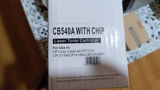 Vendo tóner HP Color LaserJet CB540A con chip, reciclado. Está sin abrir, precintado. - Compatible con impresoras HP Color LaserJet CP1215, CP1515N, CP1518NI y CM1312MFP. - Incluye un (1) tóner.