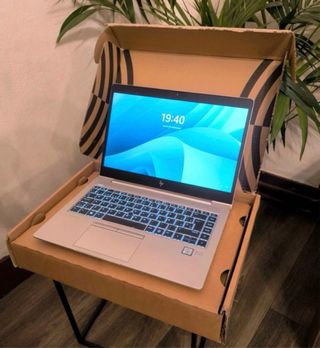 Ordenador portátil HP en acabado plateado. - Diseño elegante y moderno. - Compacto y ligero para llevar a cualquier parte.