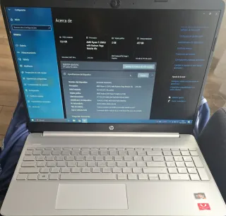 Vendo portátil HP 15s en muy buen estado y funcionando perfectamente. Con muy poco uso. Rápido y fiable para trabajo, estudios o uso diario. Características: Pantalla 15,6 AMD Ryzen 5 12 GB de RAM SSD 512 GB (rápido y silencioso) Gráfica AMD Radeon Vega 8 Windows 10 / 11 64 bits Teclado español WiFi, Bluetooth, HDMI, USB, jack auriculares Estado: Buen estado, sin fallos. Sin ni un solo roce. Incluye cargador original. Ideal para: Estudiar, trabajar, ofimática, navegación, videollamadas y streaming.