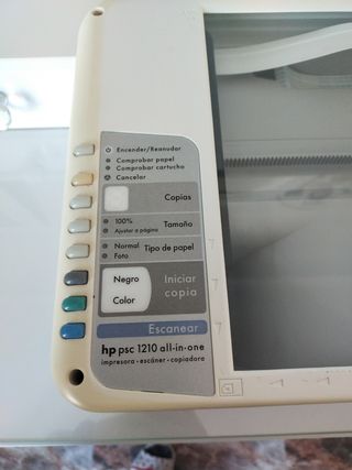 Impresora multifunción HP Officejet J7500 All-in-One en buen estado. Funciona correctamente. - Imprime, copia y escanea. - Incluye cable de alimentación. - Dispone de una bandeja de entrada para papel.