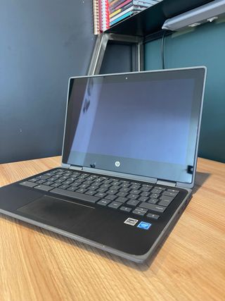 HP Chromebook x360 11 G3 EE, un versátil portátil convertible 2 en 1. (+cargador y fonda protectora) • Pantalla táctil de 11.6” con bisagra de 360º (modo portátil/tablet/tienda) • Modelo: HP Chromebook x360 11 G3 EE • Procesador: Intel Celeron • RAM: 4 GB • Almacenamiento: 32 GB / 64 GB eMMC (según versión que tengas) • Sistema operativo: ChromeOS • Webcam integrada • Wi-Fi + Bluetooth • Puertos: USB-C, USB-A, jack de audio, etc. • Teclado en español (QWERTY)