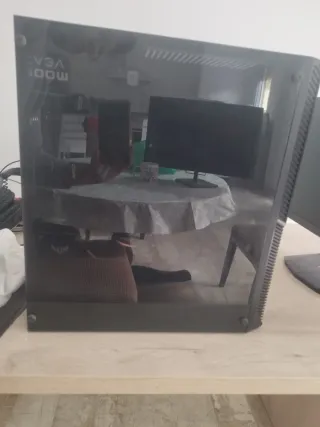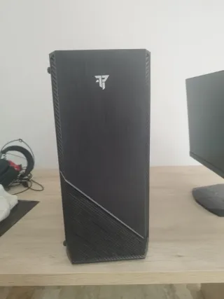 Torre de ordenador de sobremesa con un diseño moderno y elegante. - Panel frontal con acabado cepillado. - Detalles en la parte inferior del frontal. -1065ti -SSD 250 - disco duro 1 tera -32 gb RAM ddr4