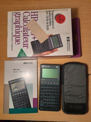 Calculadora gráfica HP 48G+ con 128 Ko de RAM. - Ideal para programaciones y gráficos. - Incluye guía de iniciación y manual de utilización, ambos en francés. - Funda protectora de transporte.