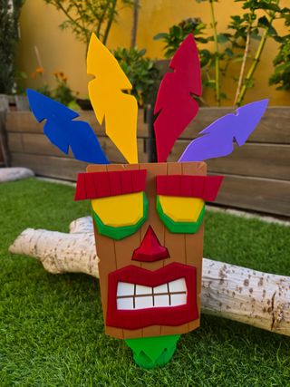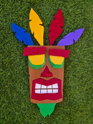 Máscara de Aku Aku impresa en 3D (impresora de filamento) del videojuego Crash Bandicoot. Perfecta para decorar la pared o una estantería. Mide alrededor de 44 cms de alto. Se puede hacer en otros tamaños. Se realizan otros trabajos de impresión 3D por encargo, ya sea en FDM (filamento) o en resina. Cualquier duda, consulta sin compromiso. Play Station, Uka Uka, Coco, Cortex, Warped, Woompa, Mask, Naughty Dog