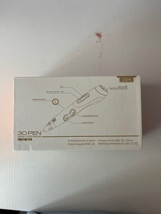 Vendo bolígrafo 3D, ideal para crear tus propios diseños. Incluye filamentos de colores. - Modelo 06A. - Boquilla de 0.6mm. - Filamento PLA/ABS de 1.75mm. - Temperatura de trabajo: 185-210°C. - Alimentación: 5VDC-2A. - El bolígrafo está en buen estado.