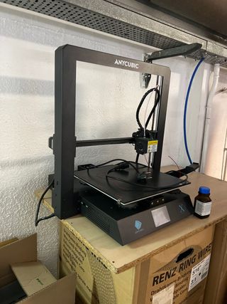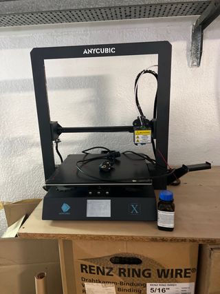 Impresora 3D Anycubic Mega X en color negro. Diseñada para ofrecer impresiones de gran tamaño y calidad. - Gran volumen de impresión. - Estructura robusta. - Pantalla táctil para control. 300x300x305 volumen de impresión Antigua, pero funcionando