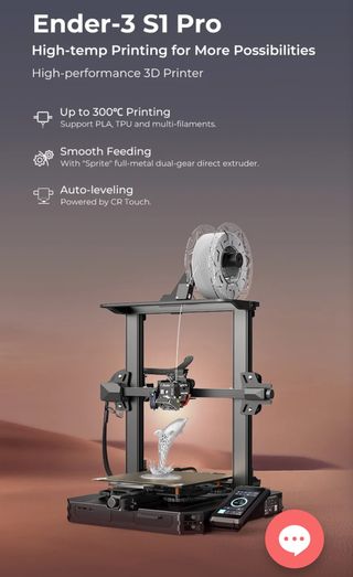 PRECIO REBAJADO DE 220 A 165 trato en mano!! Impresora 3D de la marca Creality modelo Ender 3 S1 Pro. La vendo porque fue un regalo y no la uso. Está nueva poquísimas horas de uso, nunca se ha abierto ni modificado. Montaje sencillo, encender nivelar y usar sin ningún dolor de cabeza. La impresora es super estable tiene doble eje, extrusión directa, nivelador de cama automatico y base magnética con texturizado para facilitar su despegue sin ningún tipo de problemas, pantalla digital con todo el menú bastante completo y moderno, led arriba para encender y ver la impresión... Envio disponible via wallapop o agencia.