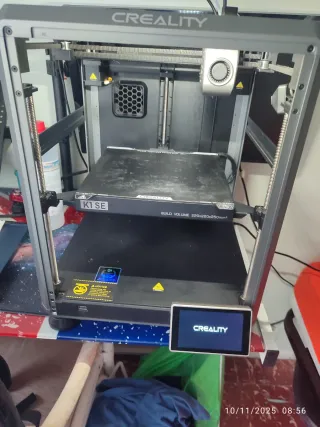 Impresora 3D Creality K1 SE en color gris y negro. Diseñada para la creación de modelos tridimensionales. La vendo ya que la compré para hacer un TFG y no la usaré más. Fue mi primera impresora 3D y es muy intuitiva. - Volumen de impresión: 220x220x250mm. La impresora funciona estupenda igual que al principio ya que no le he dado mucho uso. La cama si que se ve un sucia debido al pegamento. INCLUYO: - Camara creality - Lo que me sobró de un rollo de PLA (creo que queda 0,5kg). - Lubricante creality - Pegamento para la cama - Alcohol isopropilico 99,9% pureza