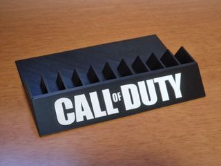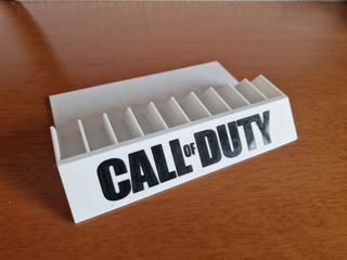 Vendo soportes expositores para juegos de ps2, ps3, ps4 y ps5 con el logo de la saga Call of duty. Están hechos con impresora 3d con filamento ecológico de alta calidad.