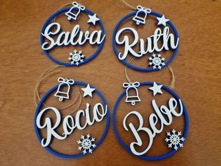 Vendo adornos navideños personalizados con el nombre y color que elijas. Están hechos con impresora 3d con filamento ecológico de alta calidad.