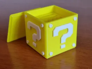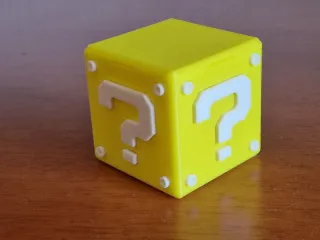 Caja con diseño de bloque de interrogación, inspirada en los videojuegos de super Mario Bros. Ideal para guardar cartuchos de juego de Nintendo switch y tarjetas micro sd. Está hecho con impresora 3d con filamento ecológico de alta calidad. - Color amarillo brillante. - Detalles en relieve blanco.
