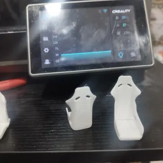 Dos asientos de coche a escala 1/24 para maquetas.Echo con impresora 3D La pareja de asientos 2€ hay dos modelos - Diseño deportivo. - Color blanco.