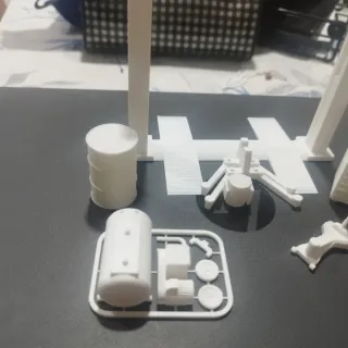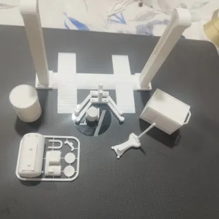 Kit de piezas para crear dioramas a escala 1/24, ideal para maquetas de coches.Echo con impresora 3D - Componentes detallados para escenas. - Diseñado para modelismo. - Material blanco para pintar.
