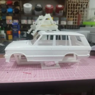Soporte para maquetas de carrocerías a escala 1/24. Ideal para pintar o trabajar en tus modelos.,echo con impresora 3D - Diseñado para carrocerías de 1/24. - Material plástico blanco.