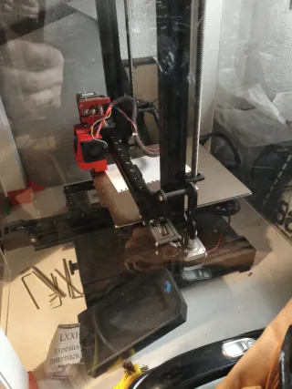Impresora 3D Creality Ender 5 en color negro. Ideal para proyectos de impresión. Modificada con extrusor cerca de boquilla de salida. - Gran volumen de impresión y altura - Estructura robusta. La impresora está prevista para imprimir materiales tipo ABS y PLA al estar incluida en el mueble cerrado. Los circuitos están fuera para evitar sobrecalentamiento. Si se quiere el mueble son 40€ a incrementar. Si no se quiere, se desmontará el mueble y se acoplará a la estructura. Incluido accesorios que se ven en las fotografías. Boquillas, guías, extrusor, correas, etc