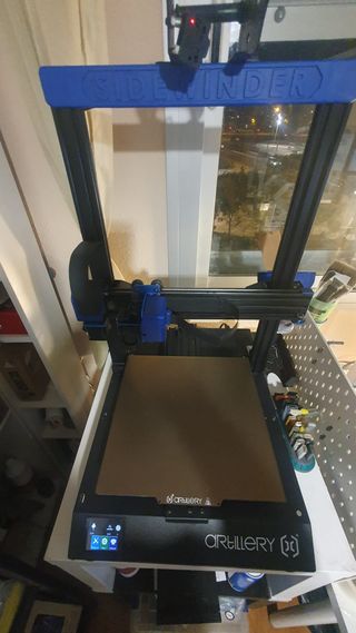 Impresora 3D Artillery Sidewinder X2 en color negro y azul. OFERTA!! - Modelo X2. - Diseño Sidewinder. - Cama 300x300 - Placa magnética. - Extrusor y cableado nuevo ( cambiado) Se entrega en funcionamiento, en ocasiones da error el sensor de temperatura de la cama si subes a más de 60°, usando fijación de laca no es necesario calentar la cama a tanta temperatura, pero sino se puede cambiar sensor, se vende por separado. Se regala amortiguadores de vibración, placa magnética de repuesto, herramientas, piezas de repuesto para el extrusor. Si necesitas más información ponte en contacto. PREFERIBLE ENTREGA EN MANO EN ZARAGOZA.