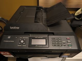 Impresora multifunción Brother MFC-J5910DW. - Modelo: MFC-J5910DW Vendo impresora multifuncion Brother con error 7 (papel atascado) que tras limpiarla minuciosamente, el error se manteniene. Hasta ayer, imprimia perfectamente hasta en DinA3. Si algun manitas entiende de errores es una buena oportunidad. Escaner perfecto. Exterior perfecto. Muy bien cuidada. - Funciones: Impresión, escaneo, copia y fax. - Conectividad: USB, Red. WIFI - Pantalla táctil. - Admite papel tamaño A3.