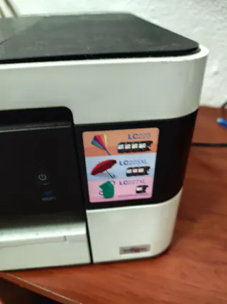 Impresora multifunción Brother en color negro. - Conectividad WiFi. - Funciones de fax, digitalización y copiado. - Modelo MFC-J490W. - tiene todos los cartuchos llenos menos el color azul. - WiFi - Se vende porque no se utiliza.
