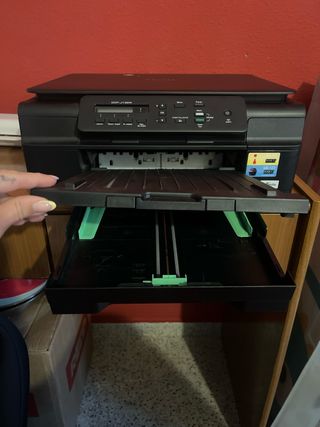 Impresora multifunción Brother DCP-J41200W en color y blanco y negro. Falta los cartuchos amarillo y azul, pero tengo recambio de cartuchos sin usar de regalo de los demás colores. -Medidas 48 cm ancho x 36 cm largo (contando pantalla) x 16 cm alto. - Conectividad Wi-Fi. - Pantalla integrada.