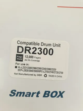 Tambor compatible para impresoras Brother. - Modelo: DR2300 - Rendimiento: 12,000 páginas - Cobertura: A4 5% - Compatible con modelos: HL-L2321/2300/2365/2380/2340/2360/2320/, DCP-L2520/2640/2500/MFC-L2703/2740/2720/2700 - Fabricado en China