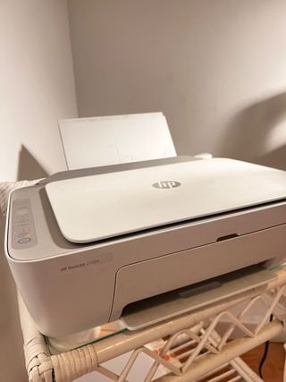 Impresora HP en color blanco. Tiene signos de uso pero funciona perfectamente. Es muy ligera y compacta.