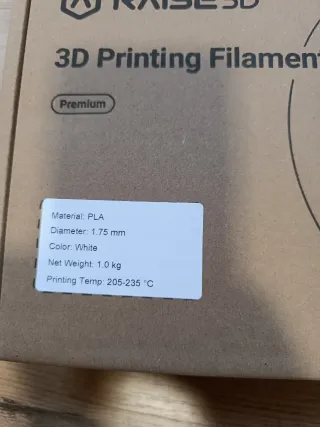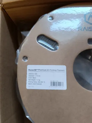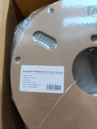 Filamento para impresora 3D Raise3D. - Material: ABS - Diámetro: 1.75 mm - Color: Gris - Peso neto: 1.0 kg - Temperatura de impresión: 230-260 °C