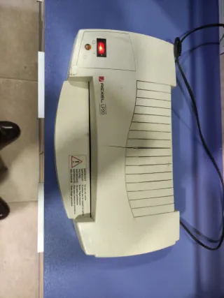 Plastificadora Rexel LP20 en color blanco y gris. Cuenta con un indicador luminoso de encendido. - Diseño compacto. - Indicador LED de encendido.