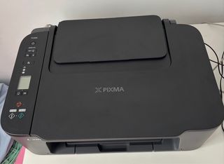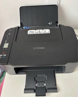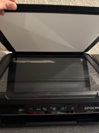 Impresora multifunción en color negro. - Función de fax. - Función de escáner. Llevo tiempo sin usarla. Quizás tengan que limpiar los cabezales.
