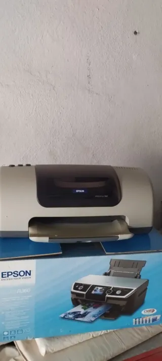 Impresora Epson Stylus C62 en color beige y gris. Incluye todos los cables y el CD de instalación. Recoger en Málaga zona centro, Cristo de la Epidemia (Calle Manrique).