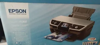 Impresora Epson R360 en color beige y gris. Ideal para tus necesidades de impresión. - Diseño elegante. - Compacta y funcional.