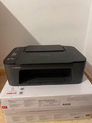 Impresora multifuncional Canon PIXMA TS3350i en color negro Modelo: TS3350i Marca: Canon Color: Negro Funciones: Imprime, copia y escanea documentos y fotos Conexión inalámbrica: Wi-Fi, Apple AirPrint, Google Cloud Print y app Canon PRINT Resolución de impresión: Hasta 4800 x 1200 dpi Cartuchos: 1 negro y 1 color (tecnología FINE) Tamaño compacto: Ideal para espacios pequeños Estado: Usada poquísimas veces, como nueva, incluye cables y manuales Ubicación: Sevilla, envío a convenir o retiro en persona