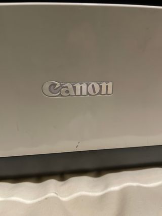 Impresora Canon en color blanco. imprime en blanco y negro y a color. Cartucho color terminado, cartucho blanco y negro recién puesto. - Diseño moderno y compacto. - Bandeja de salida de papel. - Panel de control superior.