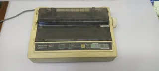 Impresora matricial Panasonic en color, modelo Quiet. - Diseño compacto y funcional. - Panel de control con botones. - Cubierta protectora transparente.