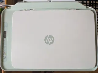 Impresora multifunción HP DeskJet 2722. - Color blanco y verde. - Diseño compacto y moderno.