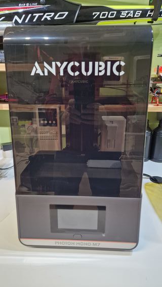 Impresora de resina Anycubic Photon M7 en color negro y gris. Diseñada para impresiones detalladas. Precio de la impresora sola, 260€ incluido el alimentador automático de resina y el calefactor, regalo botellas, resina la que aparece en las fotos y aceesorios varios. Precio del equipo de curado Anycubic Wash & Cure 3 Plus, 120€, contenedor de lavado 25€. Preferible entrega en mano en Zaragoza o alrededores. Tiene unas 3 o 4 horas de uso, comprado todo para hacer unas piezas pequeñas de precisión, está completamente nuevo todo.
