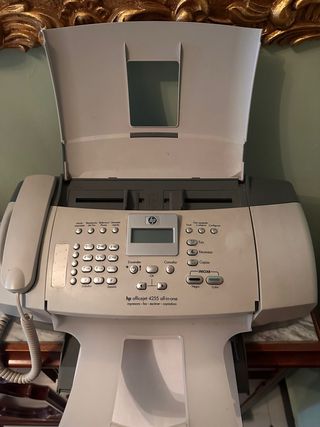 Impresora HP OfficeJet 3833, fax, escáner, fotocopias. Se conecta vía WiFi al ordenador o móvil. Tiene una pantalla táctil. Impresora nueva, la vendemos con la caja de origen. No hacemos envíos. Precio NO negociable.