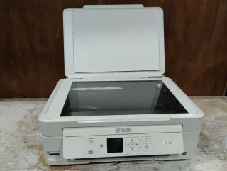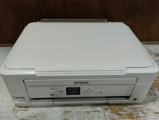Impresora multifunción Epson XP-445 en color blanco. - Conectividad Wi-Fi. - Pantalla LCD. - Diseño compacto. La impresora funciona correctamente pero los inyectores de tinta están atascados debido al cartucho seco. Viene con cable de alimentación y cable para conectar al ordenador. Cartuchos originales de Epson sin abrir, colores amarillo, magenta y cian, de regalo.