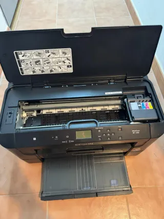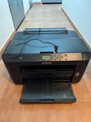 Impresora Epson Workforce WF-7210, ideal para sublimación. Aparece un fallo, en el monito sale "caja de mantenimiento a punto de agotar su vida útil". Habría que arreglarla - Color negro. - Modelo WF-7210.