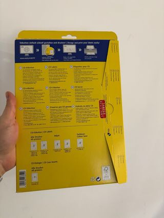 Paquete de etiquetas para CD de Avery Zweckform. Ideales para personalizar tus discos. - 25 hojas 50 etiquetas incluidas. - Tamaño SuperSize, Full Face. - Acabado opaco. - Apto para todas las impresoras.