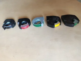 Lote de 5 recambios de cintas para etiquetadoras DYMO. - Cinta de color rojo 1 - Cinta de color verde 2 - Cinta de color amarillo 1 - Cinta de color negro 1